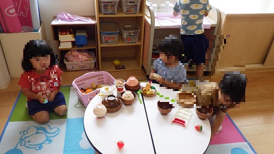 3歳児の保育室に入ると、登園後の準備をしていて子どもたちもいれば、早く登園して遊び始めている子どもたちもいます。