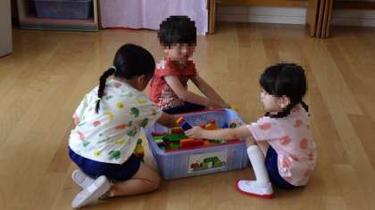 また、ブロックが好きな子どもたちは、ブロックで遊び始めていました。