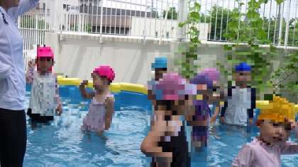 プール遊び(3歳児) 公開日 2024/07/03 更新日 2024/07/03 お知らせ 少しずつ水に親しめるようになって、楽しんでいます。 今日は、暑いので、とっても気持ちよさそうです! みんなで体操したり、浮き輪で遊んだり・・・。 <プール遊びの写真は一部ぼかしを強めています> いいね(0)