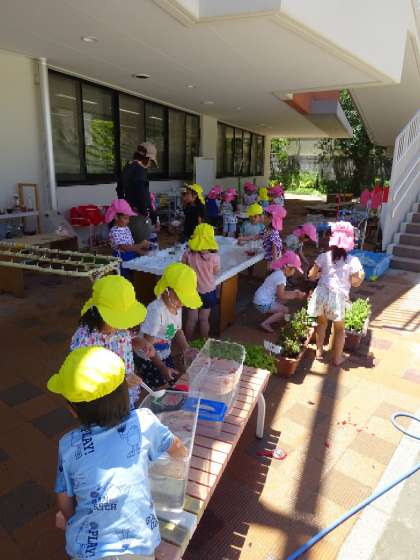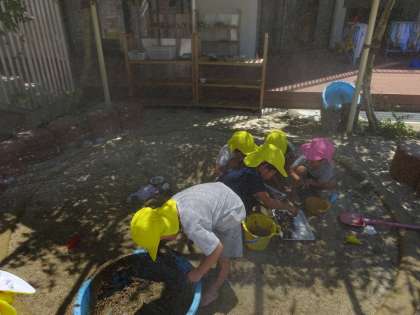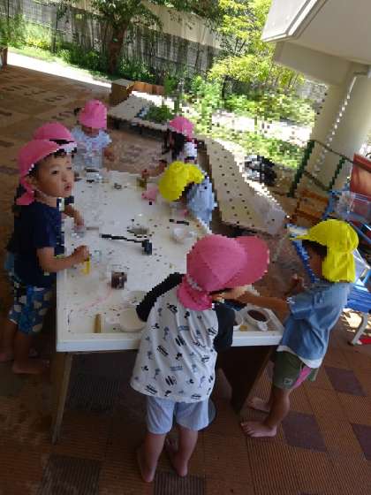 好きな遊び(4歳児) 公開日 2024/07/05 更新日 2024/07/05 お知らせ 今日は誕生会と七夕の集いで、プールはお休みでした。 園庭もとても暑かったので、今日は砂場(日除けをしています)と、テラスで水を使って遊びました。 時々教師がシャワーで水をかけると 「キャー!! 」と喜んでいました。 いいね(0)