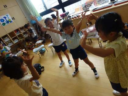 登園してくると、「2025のダンスがしたい!」と関西万博のダンスをしています。