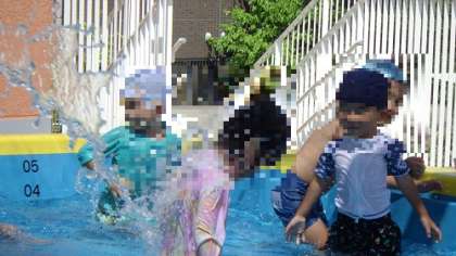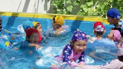 最後のプールなので、浮き輪で存分に遊んでいます。