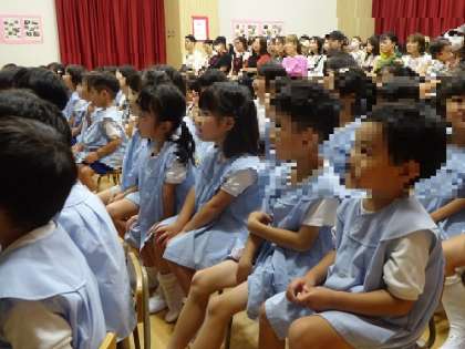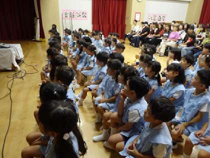 始業式では、みんなで園歌やとんぼのめがねを歌いました。