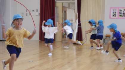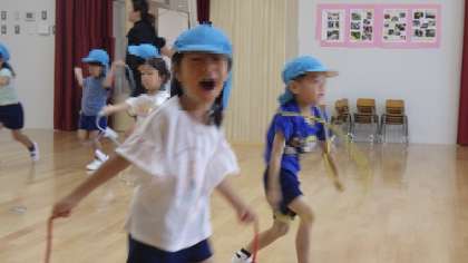 縄をたたんで回して遊んだり、走り跳びをしたり・・・。