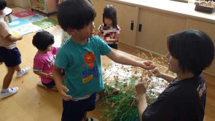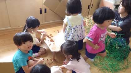 種取り(3歳児) 公開日 2024/09/03 更新日 2024/09/03 お知らせ 3歳児の朝の保育室で種取りをしていました。 「先生!3個入ってる!」 「こんなんいっぱい!」 と興味津々! やっぱり先生に見てほしい3歳児は、担任の先生にとれた喜びを伝えに行きます。 小さな手で、小さな種を一生懸命とっていました。 いいね(0)