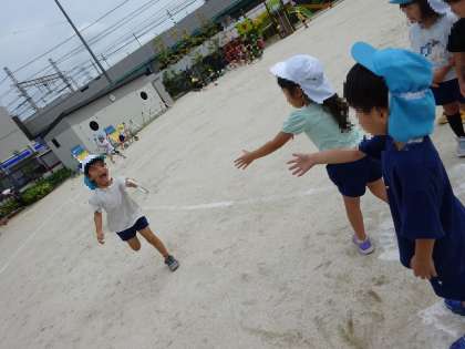 広い園庭で思い切り走ったり、友達にバトンをつないだりすることを喜んでいました。