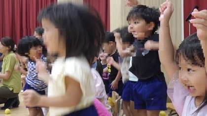 「やった!!」と先生の表現の仕方をそのまま表現する3歳児。