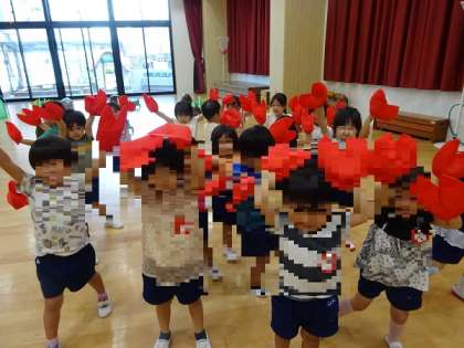 ザリガニごっこ 公開日 2024/09/11 更新日 2024/09/11 お知らせ かっこいいザリガニの爪をつけて、ザリガニごっこを楽しんでいます。 「みてみて!シャキーーン!!」 「かっこいいで」 ザリガニになって、髭を整え、顔を洗い、しっぽをきれいにし、爪を磨いて・・・ 池のなかを探検していましたよ。 「明日もするー」 明日もザリガニごっご、楽しみましょう!! いいね(0)