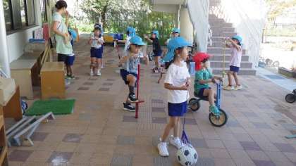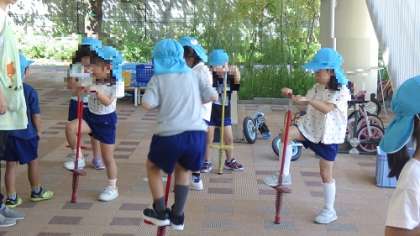 サッカーボール遊びや、ホッピングにチャレンジしていました。