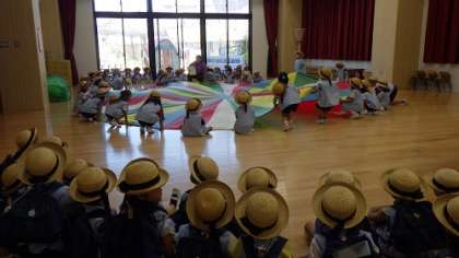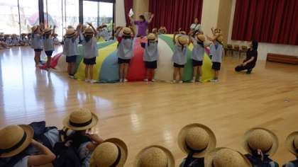 また5歳児も、友達と気持ちを合わせ、動きが揃うことが楽しいと思っている様子です。気持ちを一つに、取り組んでいます。