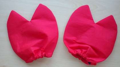 全て手作りで、しかも手縫いです。装着も自分でできるように、手首にはゴムがあります。