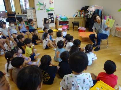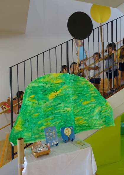 連休前から「お月さまがどんな形か見てみてね!」と伝えていたので、今日は朝から「先生お月さま見たよ」「見たけど見えなかった」など、月に興味や関心をもってくれていたようでした。
