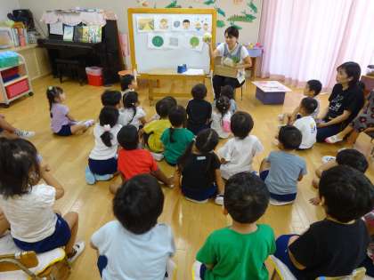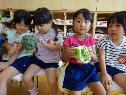今日は、いちご・ほし・ゆき組で野菜についての保健指導をしました。