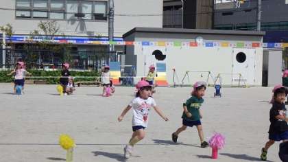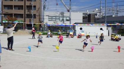遊戯室でのかけっこも楽しいですが、やっぱり広い場でのかけっこはまた、楽しいものです。