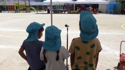 友達と声を合わせて司会をします。