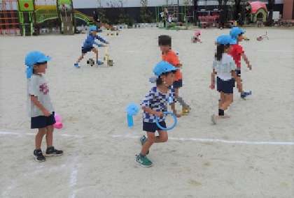先生や実習生との競争を楽しんだり、4歳児が来た時には優しく入れてくれたりしていました。