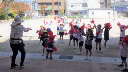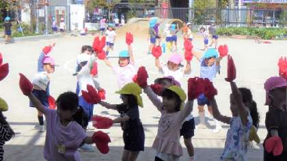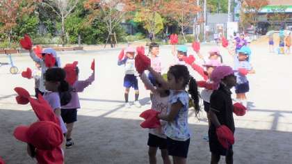 運動会の遊び2 公開日 2024/10/10 更新日 2024/10/10 お知らせ 4・5歳児もザリガニのダンスを楽しんでいます。 3歳児が先生と同じ方を向いて、なんだか4・5歳児にお手本を示しているようです。 なんともほほえましい姿…。 3歳児なりに自分たちのやっていたことに自信をもち、お兄さん、お姉さんに教えている気持ちでしょうか。 運動会の本番だけではなく、今も自信を高め、活動として続いている子どもたちです。 いいね(0)
