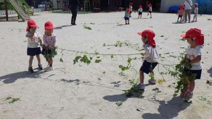 でも園庭での芋ほりはツルもそのままです。(もちろんそこに“ねらい”があるからです)