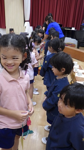 10月生まれの誕生会 公開日 2024/10/16 更新日 2024/10/16 お知らせ 今日は10月生まれの誕生会でした。 自己紹介ではお家の方から、子どもたちにお祝いの言葉をいただき、子どもたちの成長に涙を流される保護者も…。素敵な時間です。 他のクラスの子どもたちから、手づくりのプレゼントをいただいたり、明日の天王寺動物園に期待をもてるように動物クイズがあったり、とても楽しい誕生会でした! いいね(0)