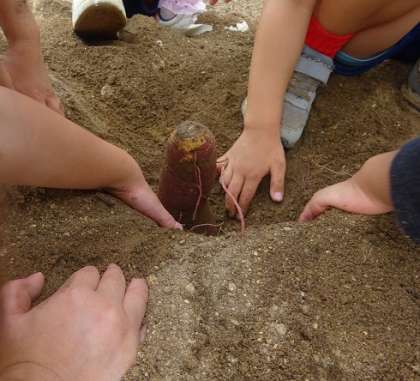 「先生!芋、まだあったでー」 公開日 2024/10/18 更新日 2024/10/18 お知らせ 先週芋ほりをした畑で「まだ、お芋おるんちゃう?」と掘り始めると・・・ なんと、おっきなお芋がまだあるではありませんか!! 周りにいた子も集まってきて、素手で芋ほりが始まりました。 たくましい子どもたち。 すると、その近くにまたお芋をみつけましたよ。 友達と協力して土からできてきたときは、拍手が起こっていましたよ。 いいね(0)