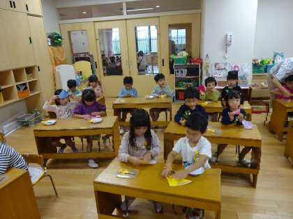 最初は大きな折り紙から…やり方が分かってくると小さい折り紙へ。