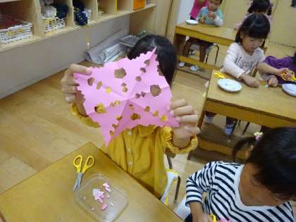 切り紙をして遊んだよ(4歳児)