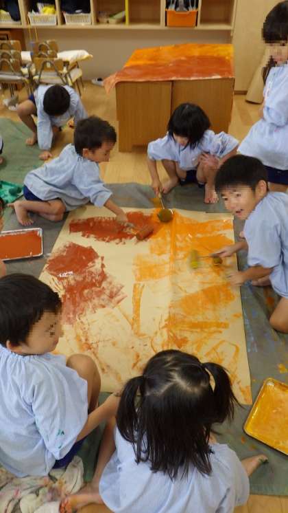 朝から、4歳児がローラー遊びをして遊んでいました。
