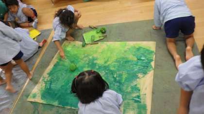 大きな綺麗な紙を「汚す」または「躊躇なく表現する」ことは、筆で絵をかくときにも、表現を躊躇なくできる第1歩です。