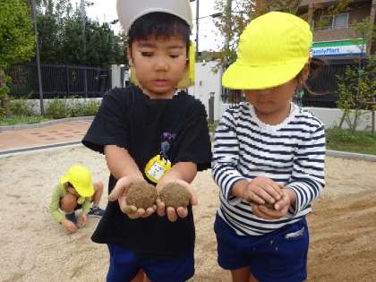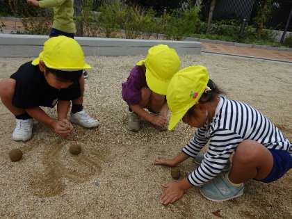 雨上がりの園庭で、しっとりと濡れていた山の土を見て、、、