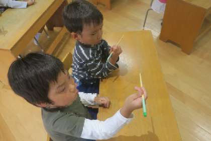 今日はほし組・ゆき組さんに、お箸の使い方について知らせました。