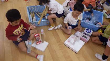 1つの箱から、何ができるかな?何に見えるかな?とイメージを膨らませたり、