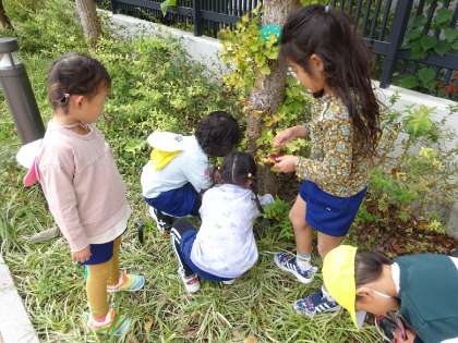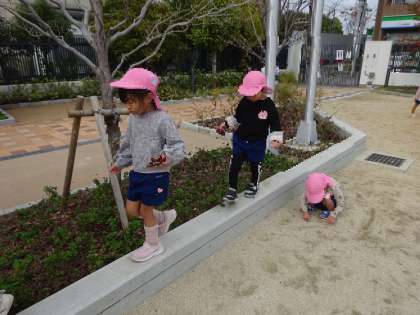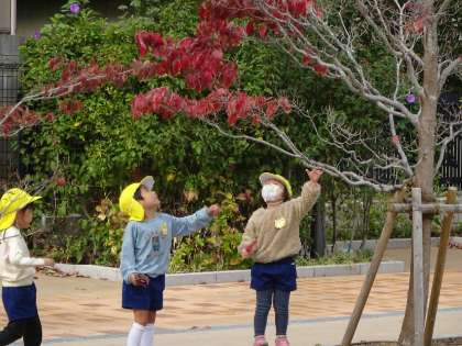 秋の落ち葉拾い(4歳児) 公開日 2024/11/19 更新日 2024/11/19 お知らせ 昨日から少し寒くなり、風も時折強く吹いて、園庭の木々から葉が落ちてきています。 今日はまた落ち葉をたくさん拾って遊びました。 「先生見て〜、赤い葉っぱ見つけたよ」 「いちょうの葉っぱがほしいな〜」 「こんな大きな葉っぱがあったよ!」 など、いろいろな色や形の違いに気付き、楽しんでいました。 いいね(0)
