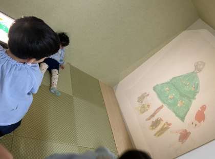 展覧会の保健コーナーで映画を見たのが楽しかったらしく、そら組の子どもたちも映画ごっこをして遊んでいます。OHPという機械を使い、自分のかいた絵を光で映しだしています。「サンタさんがツリーの下にプレゼントを持ってきたよ」というお話も聞かせてくれました。