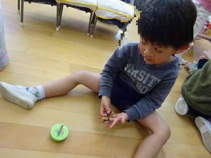 今日は「ワミー」をコマにひっかけて回して、色の変化を楽しんでいました。