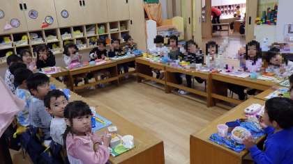 そのあとは久しぶりにほしぐみ、ゆきぐみ、みんなでお弁当を食べました。「ほしとゆき、どちらの部屋で食べてもいいよ!」と伝えると「え!!どっちしよう?」と友だちと相談しながら移動する姿がかわいらしかったです。
