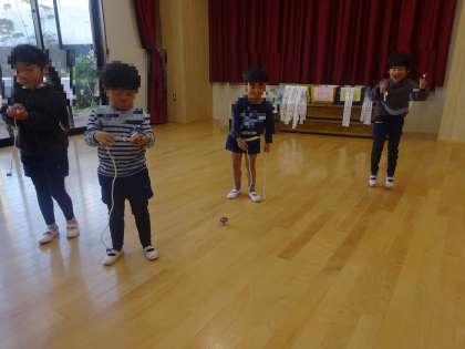 こま遊び(5歳児) 公開日 2024/12/04 更新日 2024/12/04 お知らせ 今日は、こま回しチャレンジを全員でしました。友達が回している姿に刺激を受けて、「回したい!」という意欲が高まってきています。 回せるようになって「楽しい」「嬉しい」「もっとしたい」と、好きな遊びのひとつになってきているようです。 いいね(0)