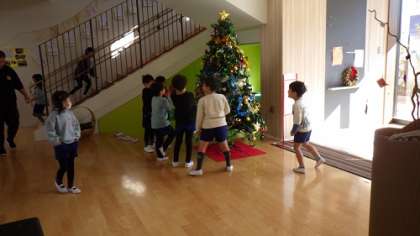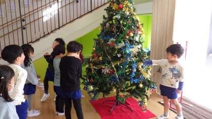 お昼過ぎ、5歳児の子どもたちは、ツリーの前でお願いをしていました。