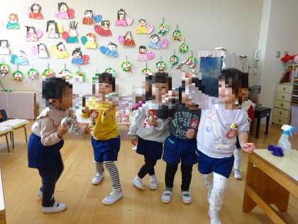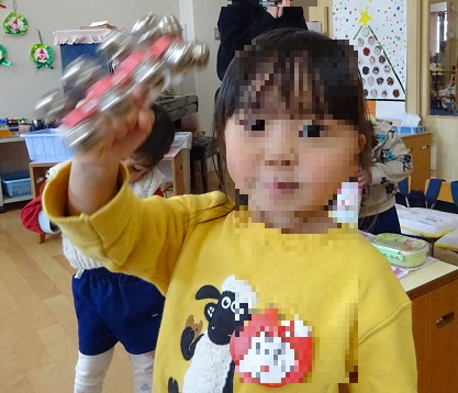 コンサートの始まり!(3歳児) 公開日 2024/12/07 更新日 2024/12/07 お知らせ 先日からスズやカスタネットを 曲に合わせて奏でて楽しんでいます。 先生や友達に「お客さんになってー」と誘って、 コンサートが始まりました。 楽器を奏でながら、ダンスも始まりましたよ。 あまりに素敵だったので、サインや握手を求められ、 アイドルのようでした。 見てもらう喜びを存分に味わっていました。 いいね(0)