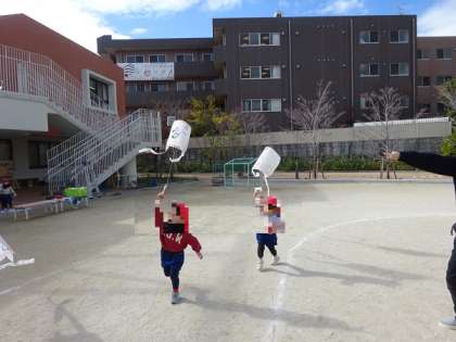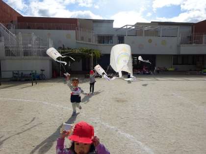 子どもたちで凧あげをしました。
