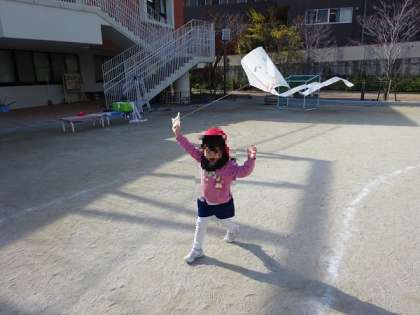 見守りの先生に自分の思いを伝えながら、凧あげを楽しみましたよ。