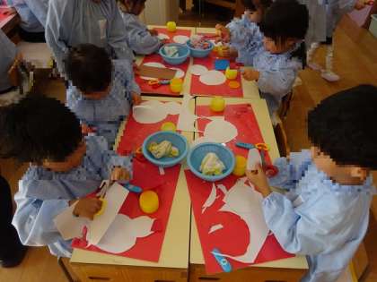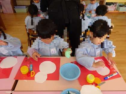 丸(曲線)をハサミで切るのはちょっと難しいけど、じっくり、ゆっくり、よく見て切りました。