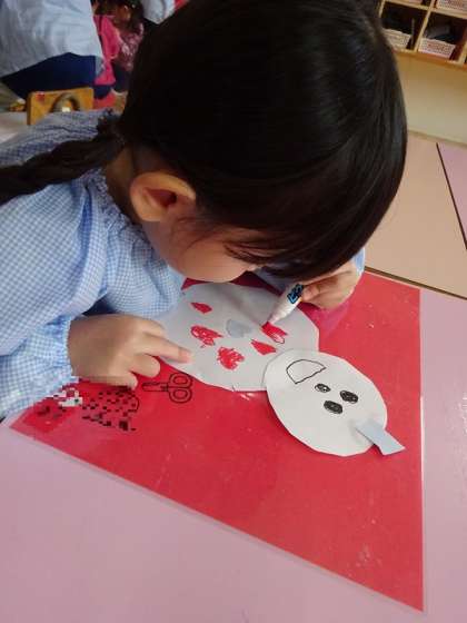 「紙でつくろうか!?」と、雪だるまつくりをしました。