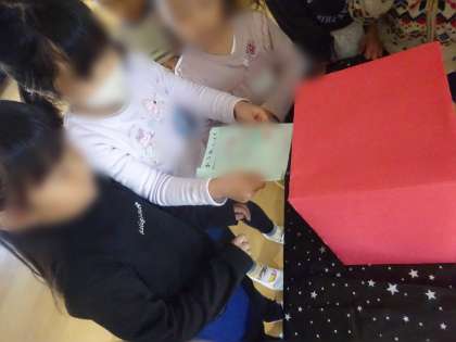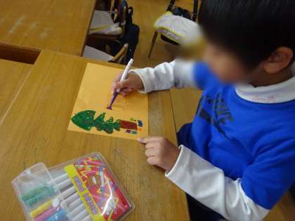 「サンタさんにお手紙をかきたい!」「会いにきてくれるの楽しみ」と期待を高めながら、今日もお手紙を書いていました。そして、サンタさんへの手紙を入れるポストをツリーの下に用意し、小さい組にも知らせ、書いた手紙を大事にポストへ入れていました。