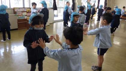 6月は、伝法幼稚園に来て一緒に遊びましたが、今回は訪問しました。