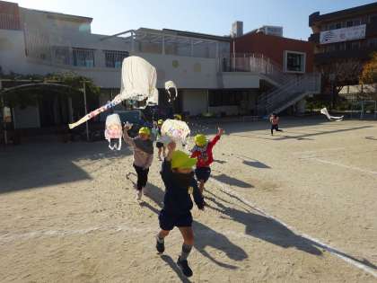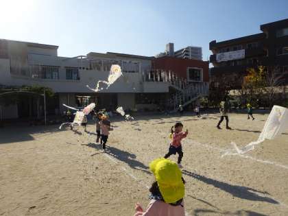 今日も青空の元、元気いっぱい走って凧あげを楽しみました♪