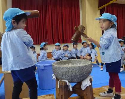 お家の方のご協力のもと、子どもたちはもちつきを楽しんでいました。