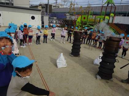 もちつきに期待を膨らませ登園してきたそら組の子どもたちは、「はやくもちつきしたい!」と楽しみにしていました。