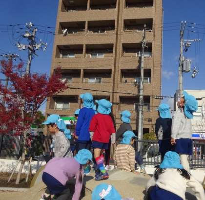 手紙を読んだ後、5歳児は昨年もサンタが来てくれたことを思い出し、園庭に氷が落ちているのではないか、そりの跡が残っていないか、まだ今なら空を飛んでいるのではないかと園庭を探し始めていました。(2枚目)
