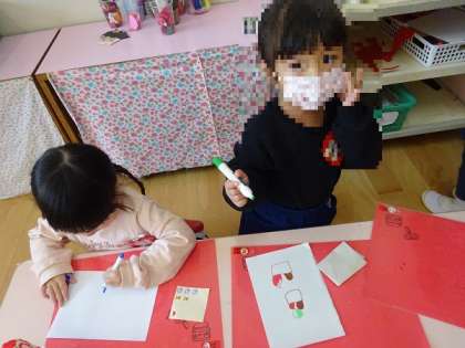 保育室では、アイスクリーム、ジュース、ピザなどのつくって、ごちそうごっこを楽しんでいました。