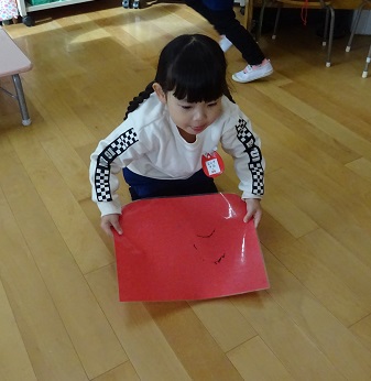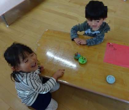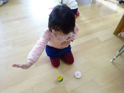 コマ回し(3歳児) 公開日 2024/12/20 更新日 2024/12/20 お知らせ いちご組ではコマ回しが盛り上がっています。 今日も登園して、朝の用意を終えると 「コマバトルしよう」「ええでー」 と遊びが始まりました。 制作の下敷きを使って、コマをすくって飛ばして遊んでいましたよ。 日に日にどんどん、楽しくなってきています。 冬休みは、ご家庭に持って帰りますので、家で子どもたちの楽しんでいる姿を、見てあげてくださいね。 いいね(0)